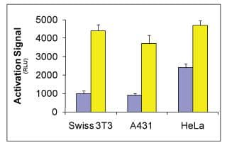 | Cell material per assay* | 10-50 µg protein (3 cm plate) | 500-2000 µg protein (10 cm plate) |