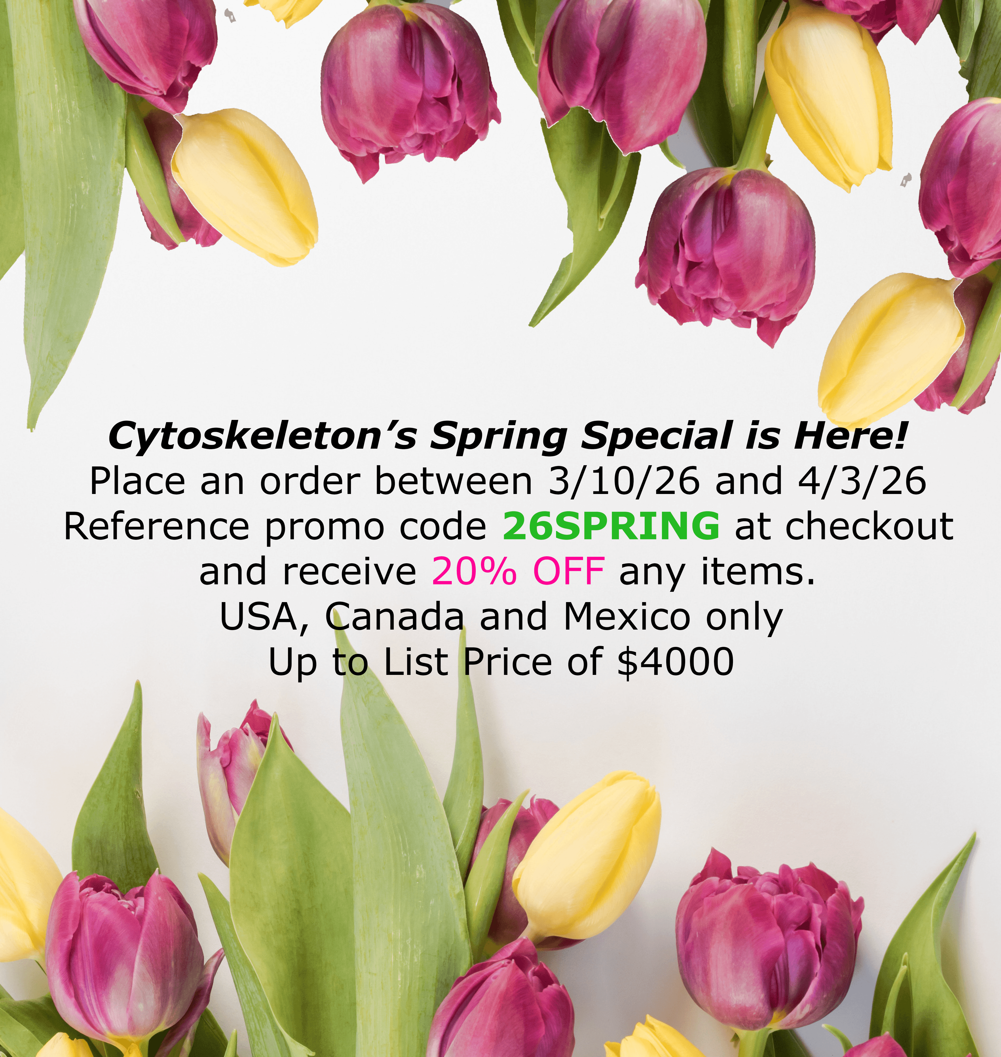Must use coupon code 26SPRING when placing your order.