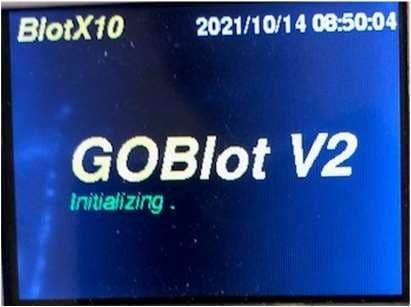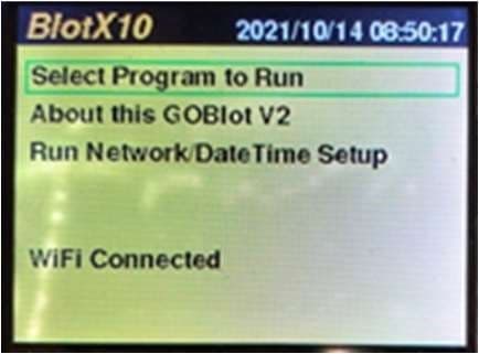 - When in front of the GO-Blot V2 machine, click the “Back” button until you see the Main Menu.