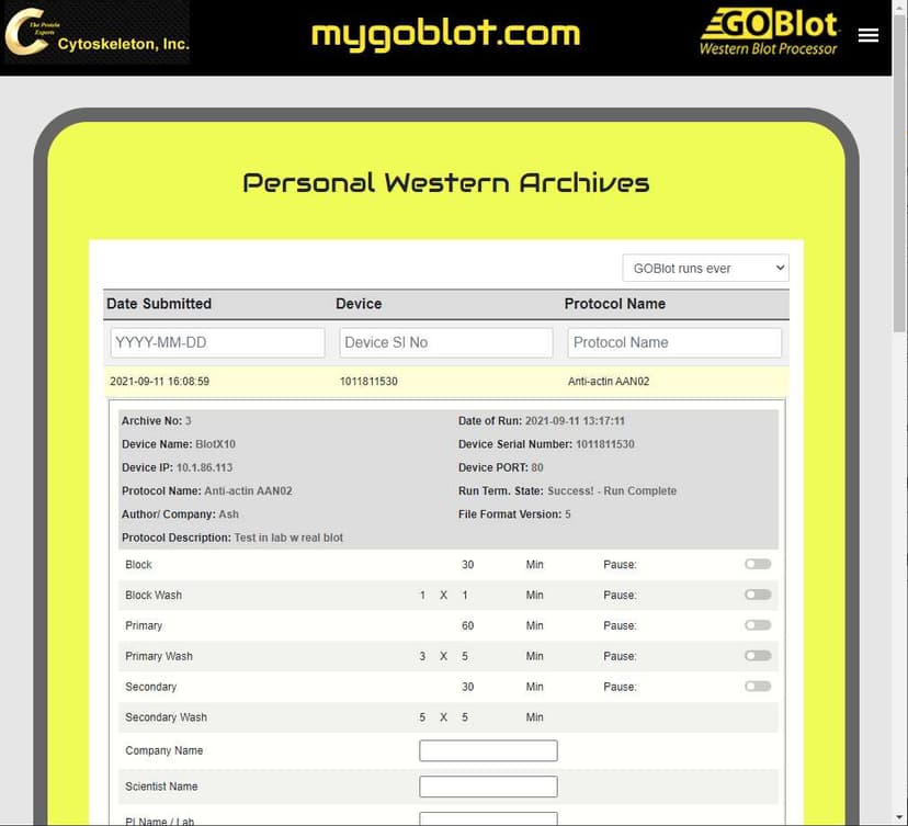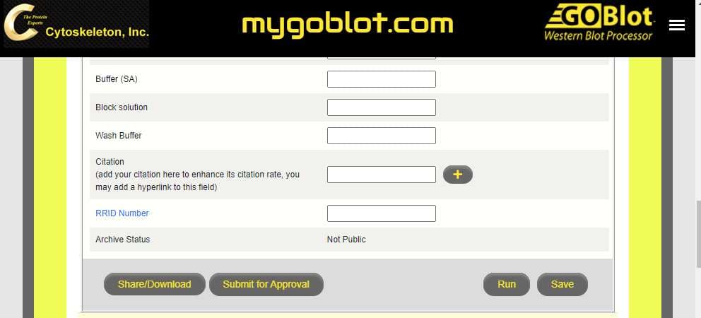 Visit mygoblot.com to set up your user account, and store your results to share with your lab or the global community. In addition, there is a growing community of users that share their successful protocol/antibody combinations on the Global Western Portal.