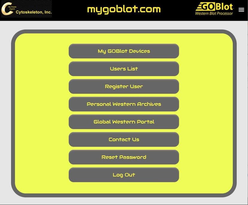 Note: The person who bought the GO-Blot V2 unit will be the Main User, all others are called Lab Users. If this needs to change contact Customer Service at the email above.